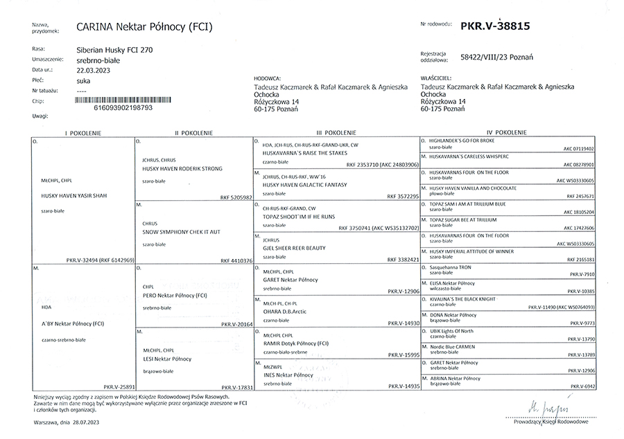 Siberian Husky - CARINA Nektar Północy FCI